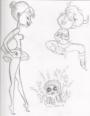 I designed the little girl for a women who's looking to publish a childrens book and the rest is from my sketchbook... My default drawings always seem to be cute but slightly deranged naked women. I think drawing them with babies adds a nice touch.